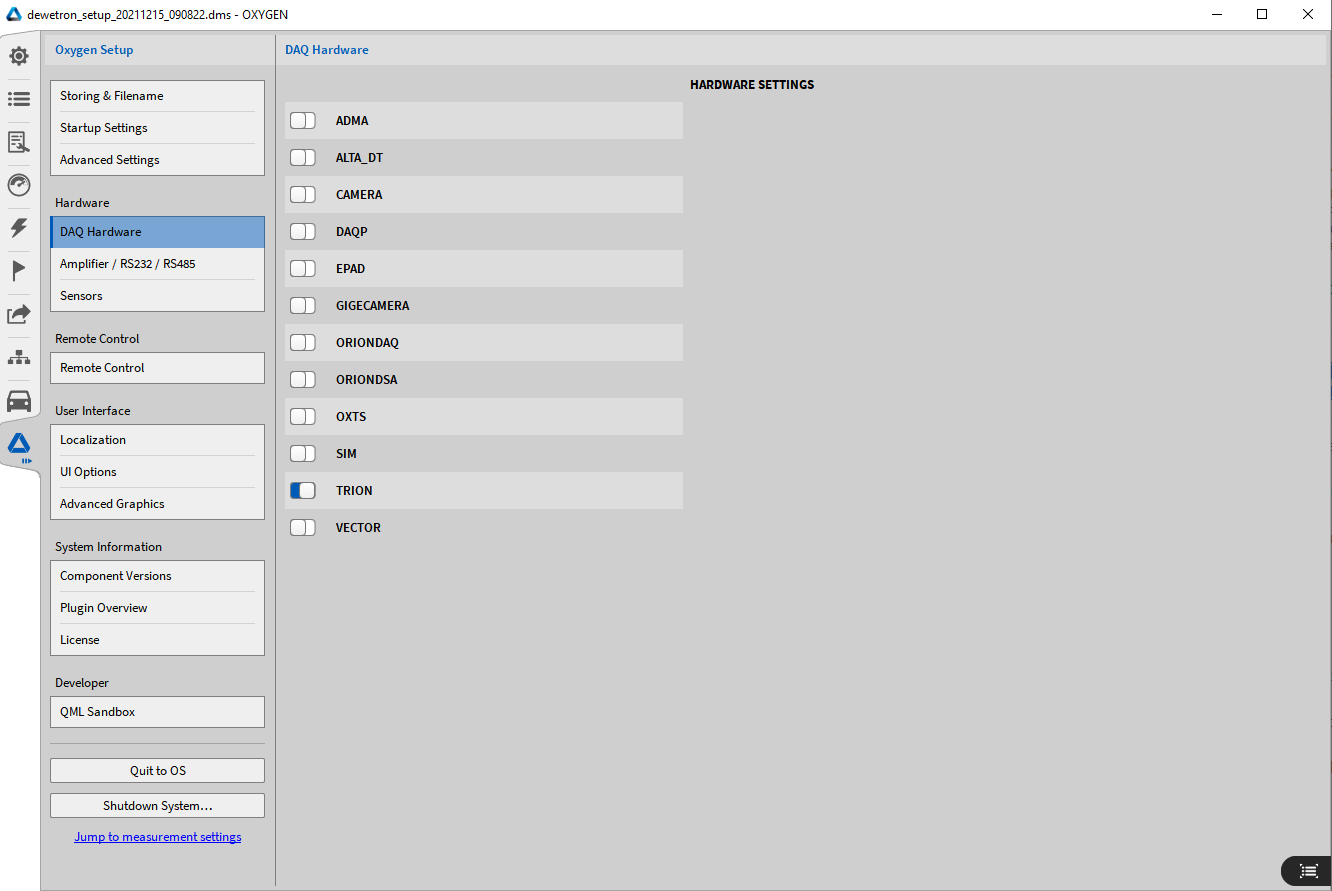 详情请参考 在OXYGEN软件中使用EPAD2 和 如何在OXYGEN软件中使用DAQP和HSI模块.