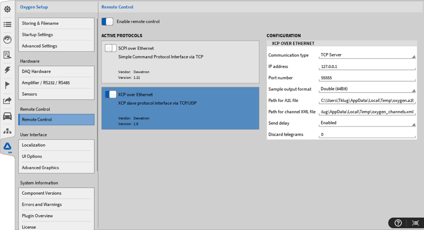 允许同时使用XCP和SCPI。只需要激活这两个插件并根据 SCPI 以太网通讯 和 XCP 以太网通讯 指导设置。