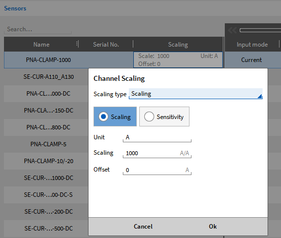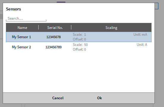 选择所需的传感器并单击OK。搜索字段可以简化对列表中特定传感器的搜索。