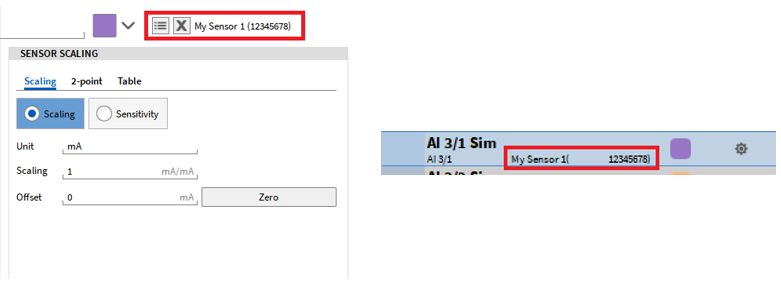 Fig. 155 在通道列表和通道设置中看到的通道所选传感器的名称¶