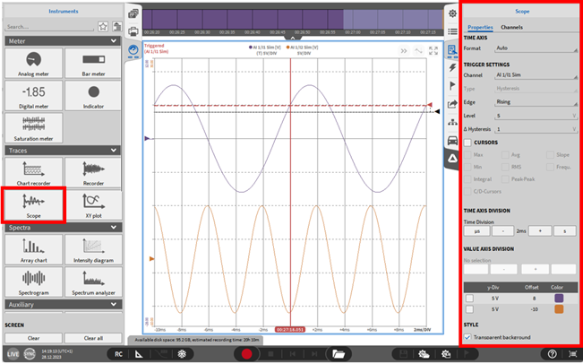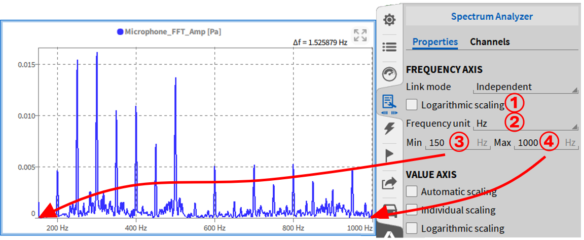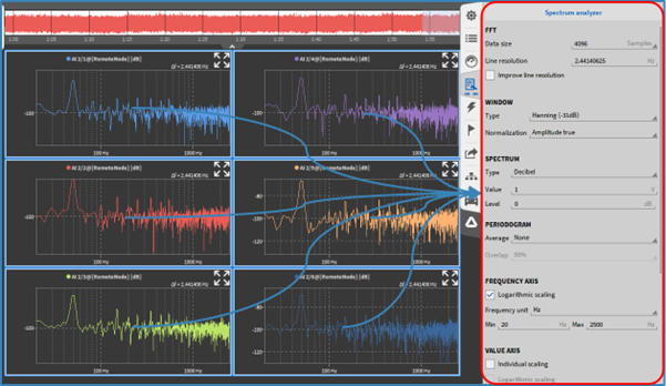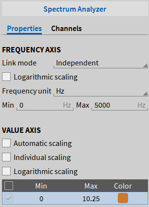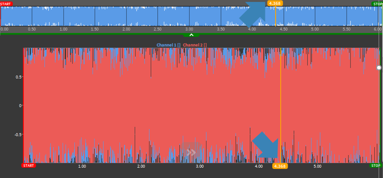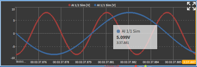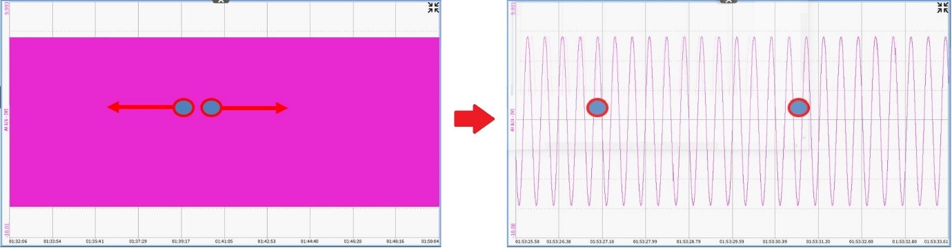 选择“独立纵坐标”选项后, 可以针对性单独更改缩放每个通道自己的Y轴。如果取消选择, 所有通道将使用公共Y轴。有关进一步缩放的详细信息, 请参阅快速选择Y轴缩放。