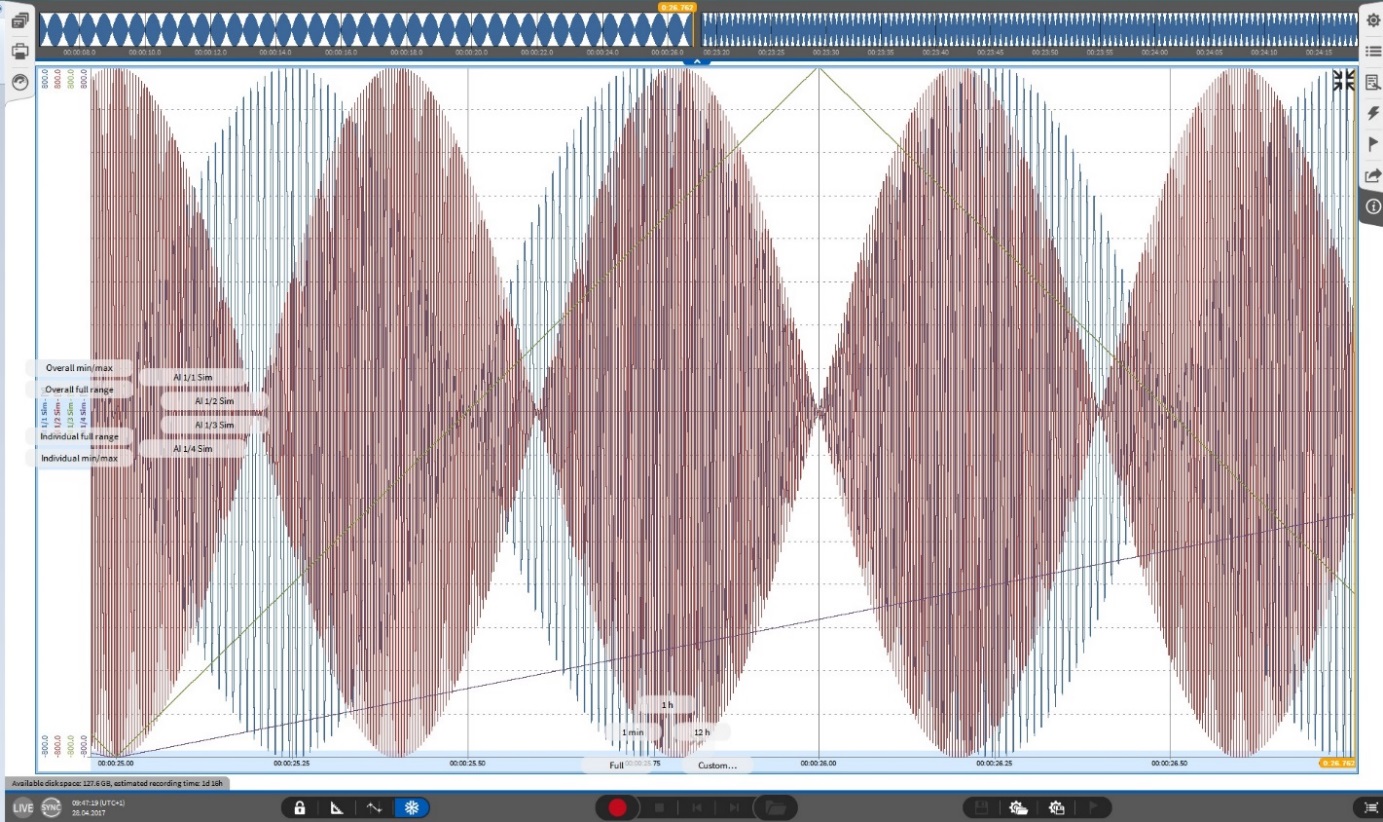 显示全部: 设置波形记录仪 X 轴显示时间为总记录时长。