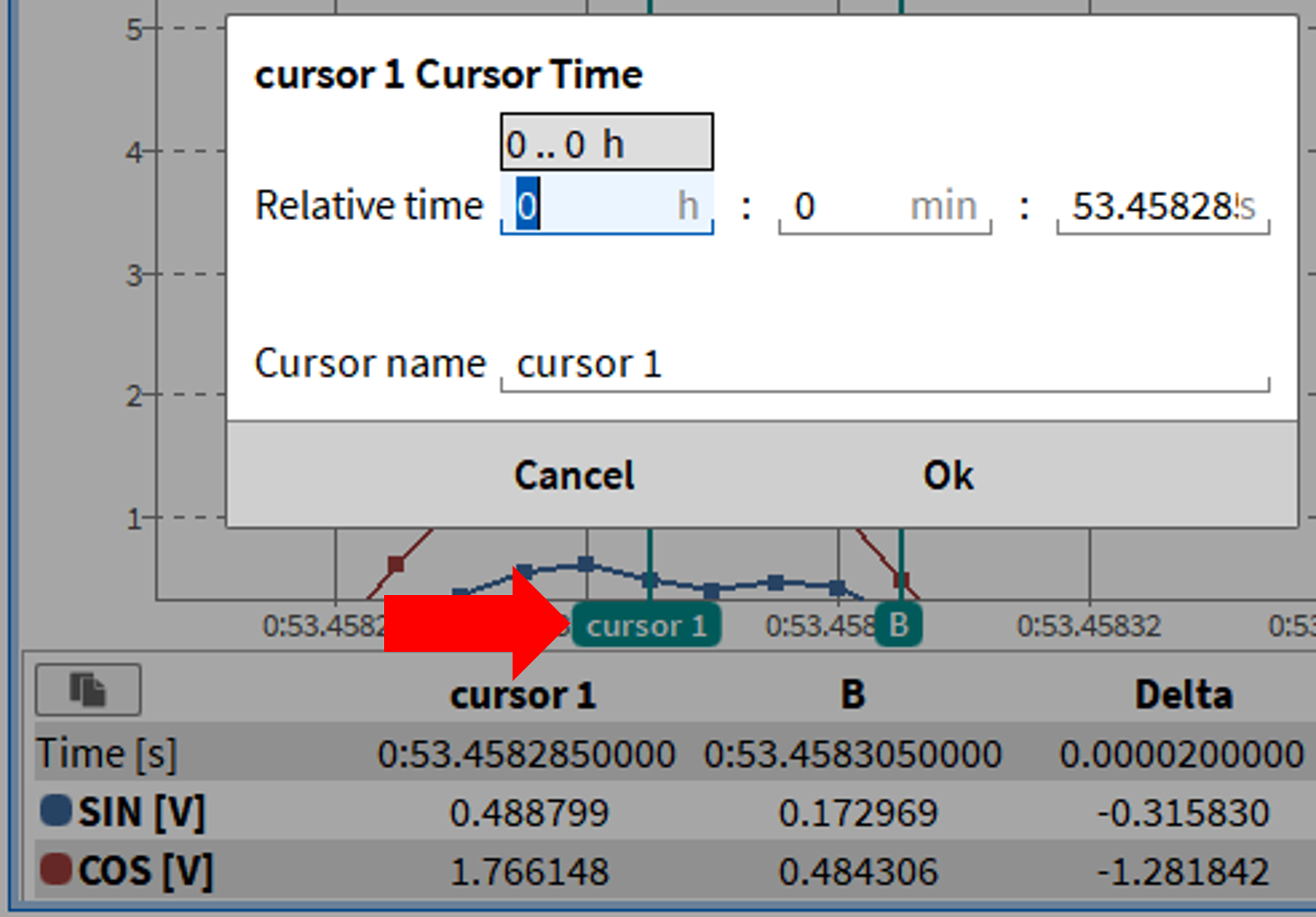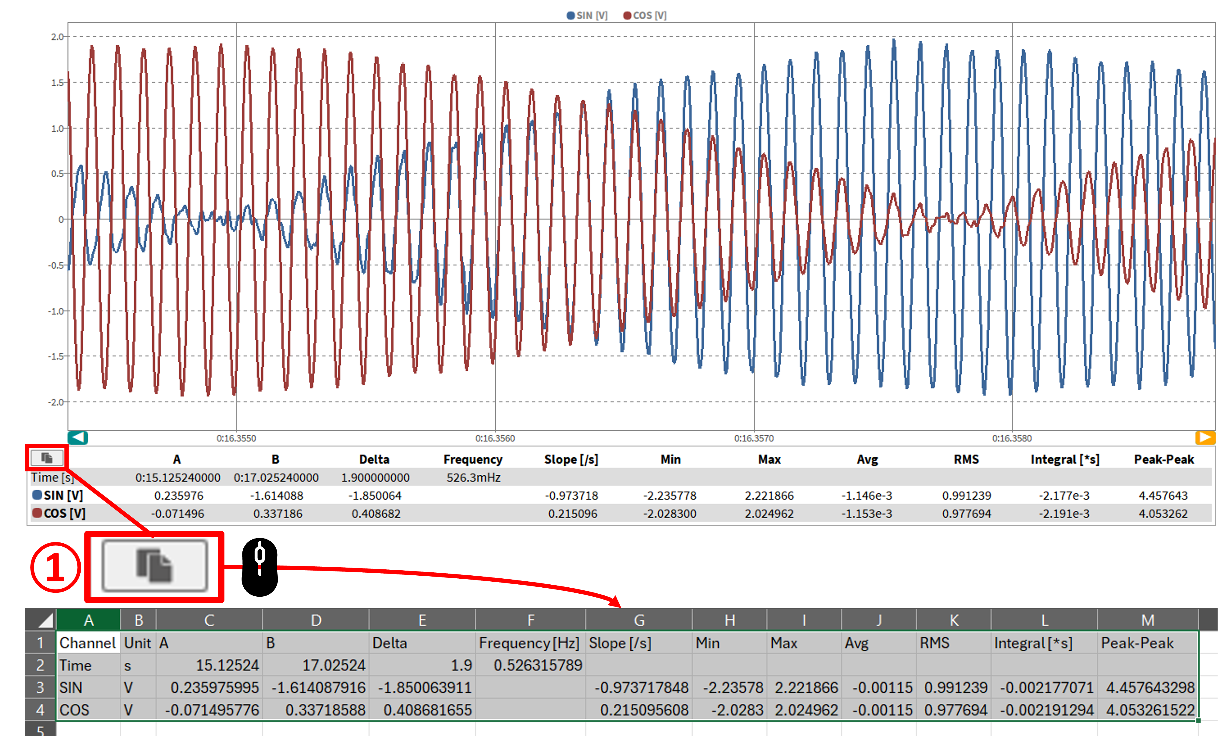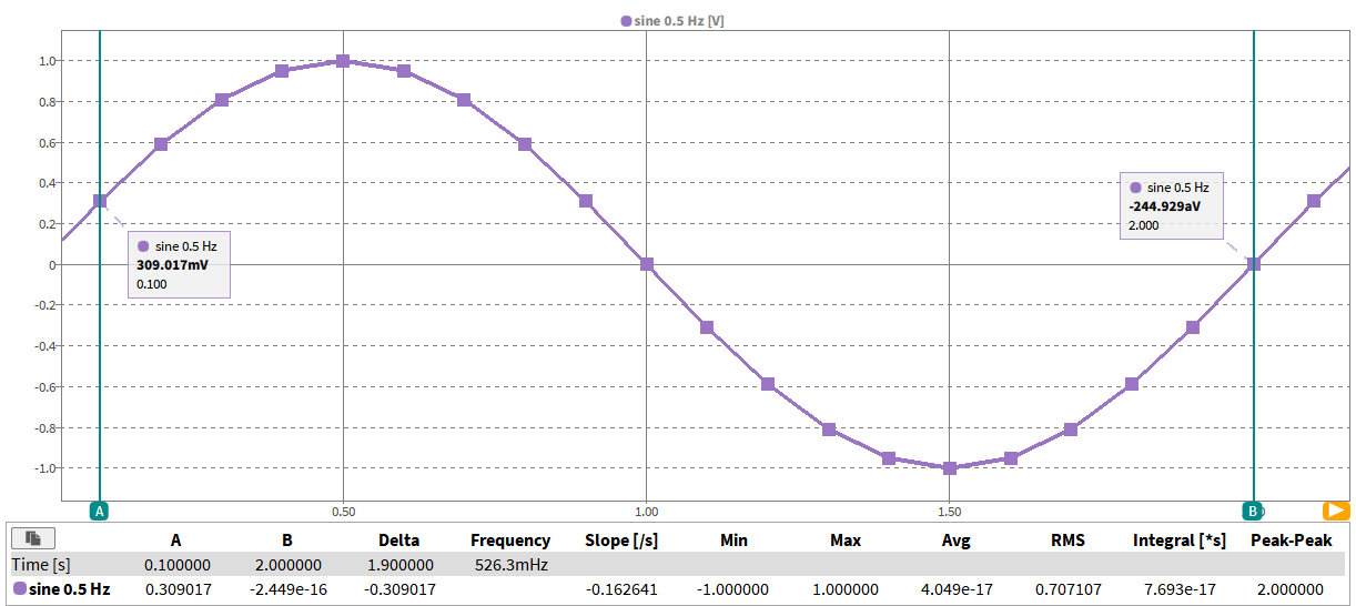 光标: 选择单个参数计算时使用光标 (使用光标统计).