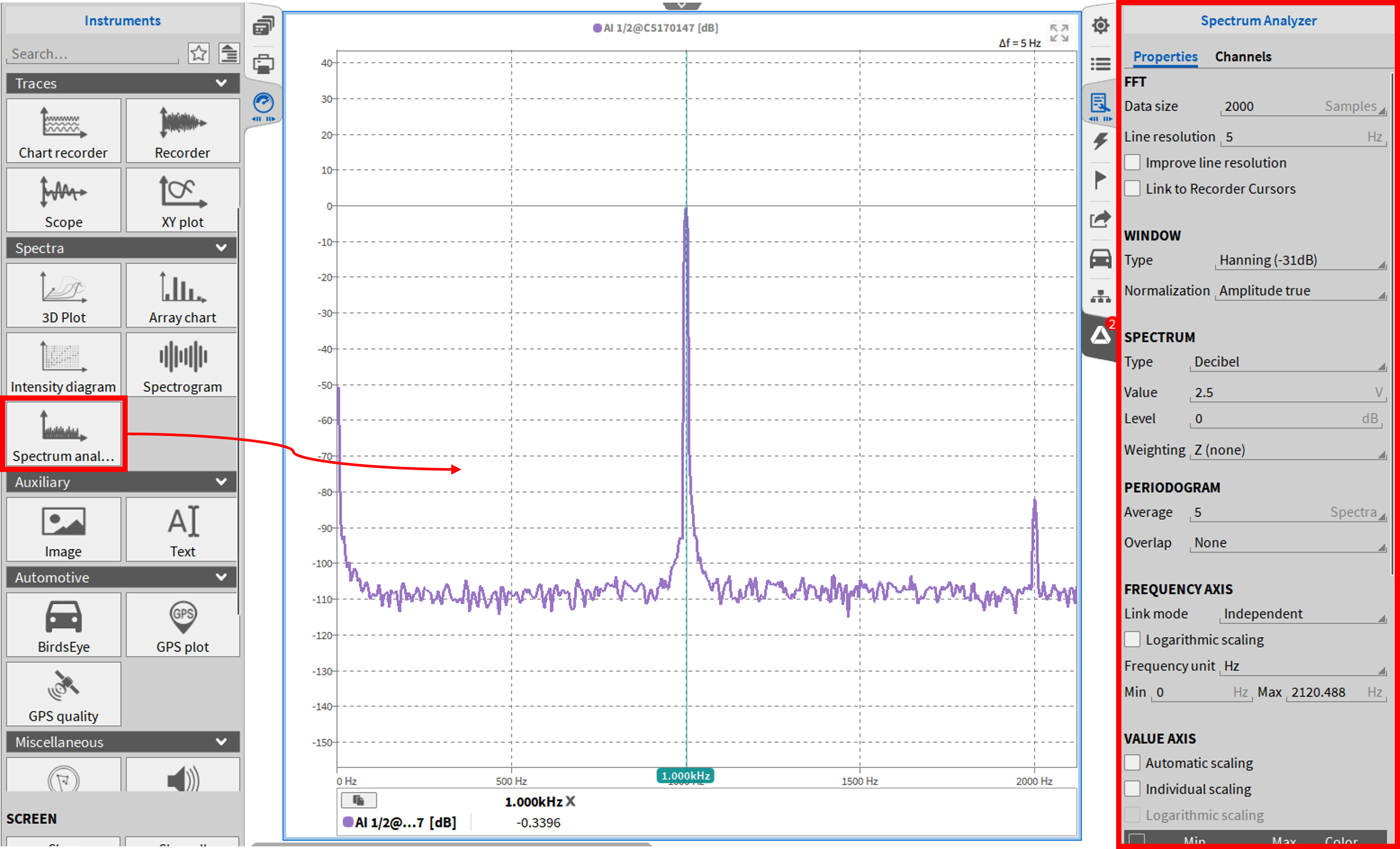 此选项需要阶次分析软件许可(OXY-OPT-OA)。