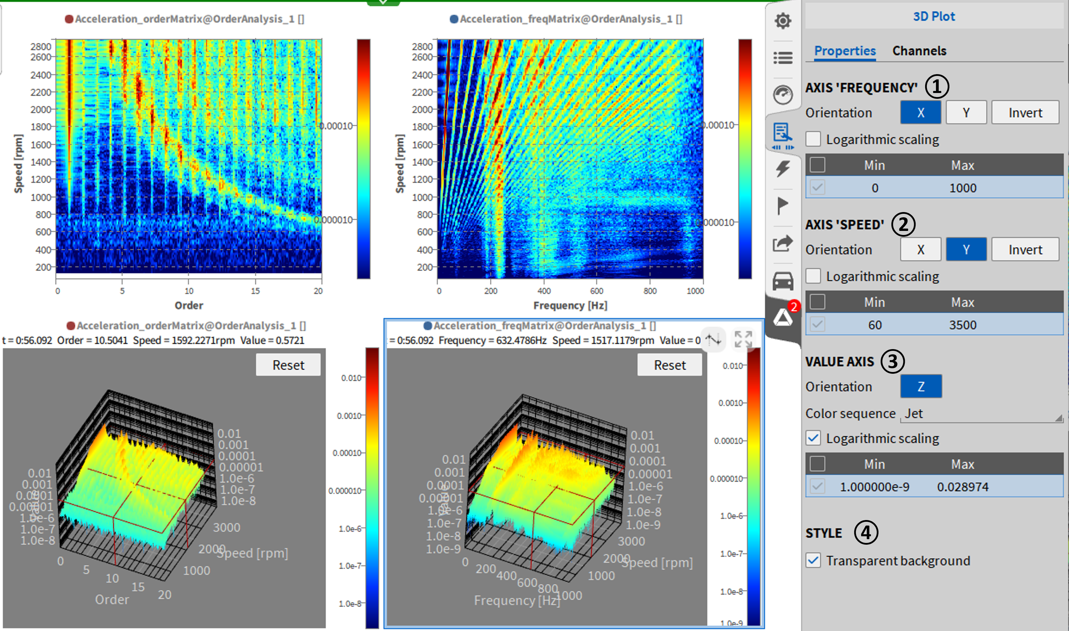 Fig. 516 基于阶次分析的一阶和二阶轨迹实例¶
