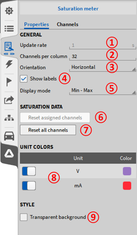 可以为某一单位指定一种颜色。通过图 Fig. 507 中的设置, 所有以 [V] 为单位的通道将以紫色显示,所有以[mA] 为单位的通道将以红色显示。 |