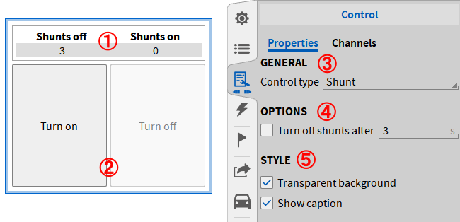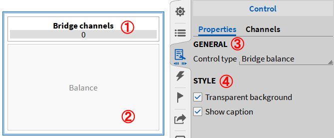 控件类型标题;显示桥路模式下的通道数。 |