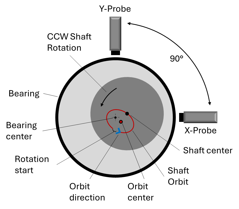 轴心轨迹图是显示旋转轴运动的工具,例如水轮机轴。轴的偏转通常需要至少测量2个信号。测试对象上的X和Y信号之间的角度需要为90°。