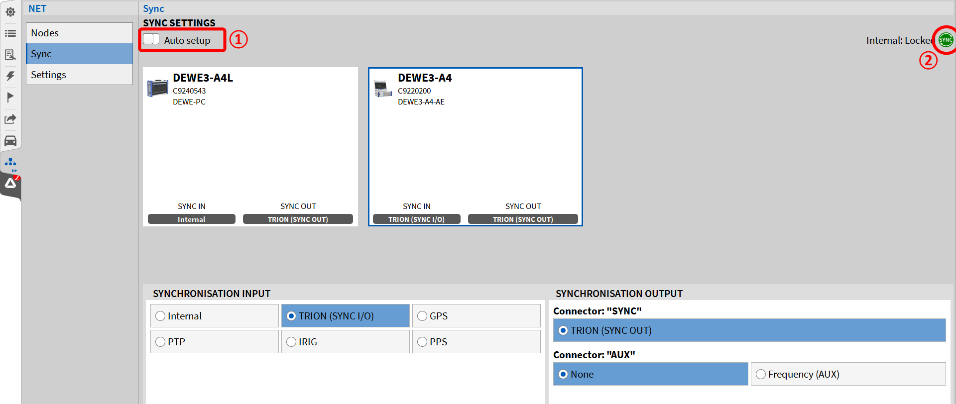 如果同步出现问题,则至少有一个节点无法同步,此时会出现一条错误消息:“系统不同步”。在这种情况下,请分别检查每个测量节点。