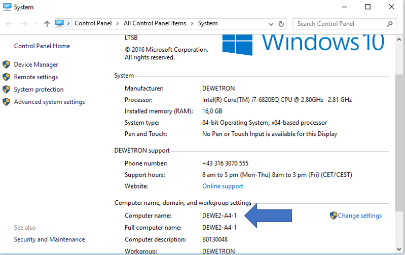 在同一个OXYGEN‐NET 下组网的设备名称必须不同, 例如多台DEWE2‐A4 在进行同步测试时,需要将几台设备命名为不同的名称, 比如DEWE2‐A4‐1,DEWE2‐A4‐2 等等。设备名称可以在windows 设置中进行修改(见图 Fig. 622) 。控制面板→ 所有控制面板选项→ 系统→ 计算机名。