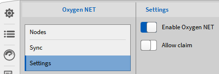 OXYGEN-NET菜单分为三个不同的部分:节点、同步和设置。