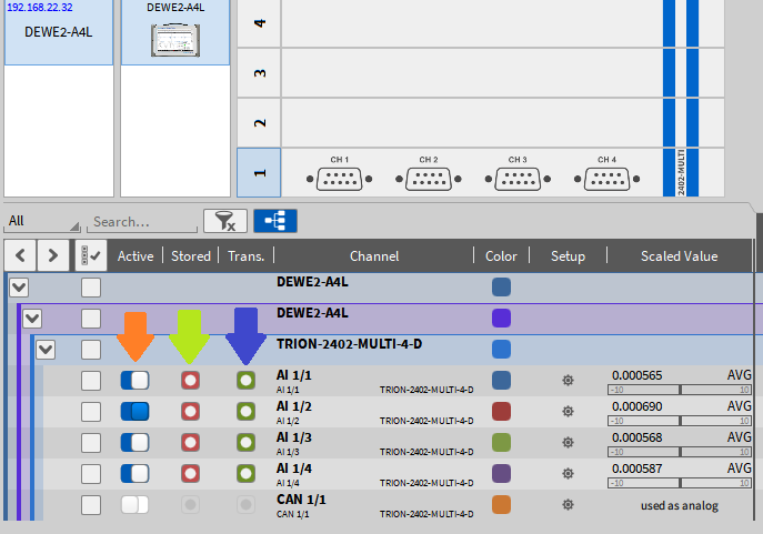 激活:图 Fig. 638 中用橙色箭头标记的滑块将激活或关闭通道的数据采集。
