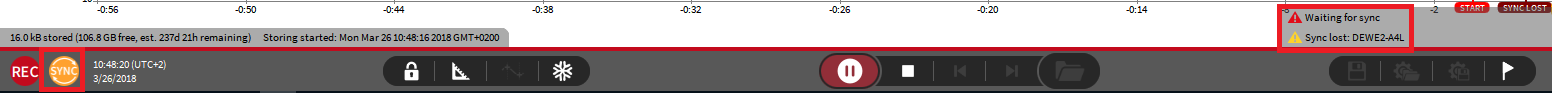 数据存储将会继续,直到按下停止按钮。请注意,如果没有有效的同步连接,记录将不再是时间同步的。